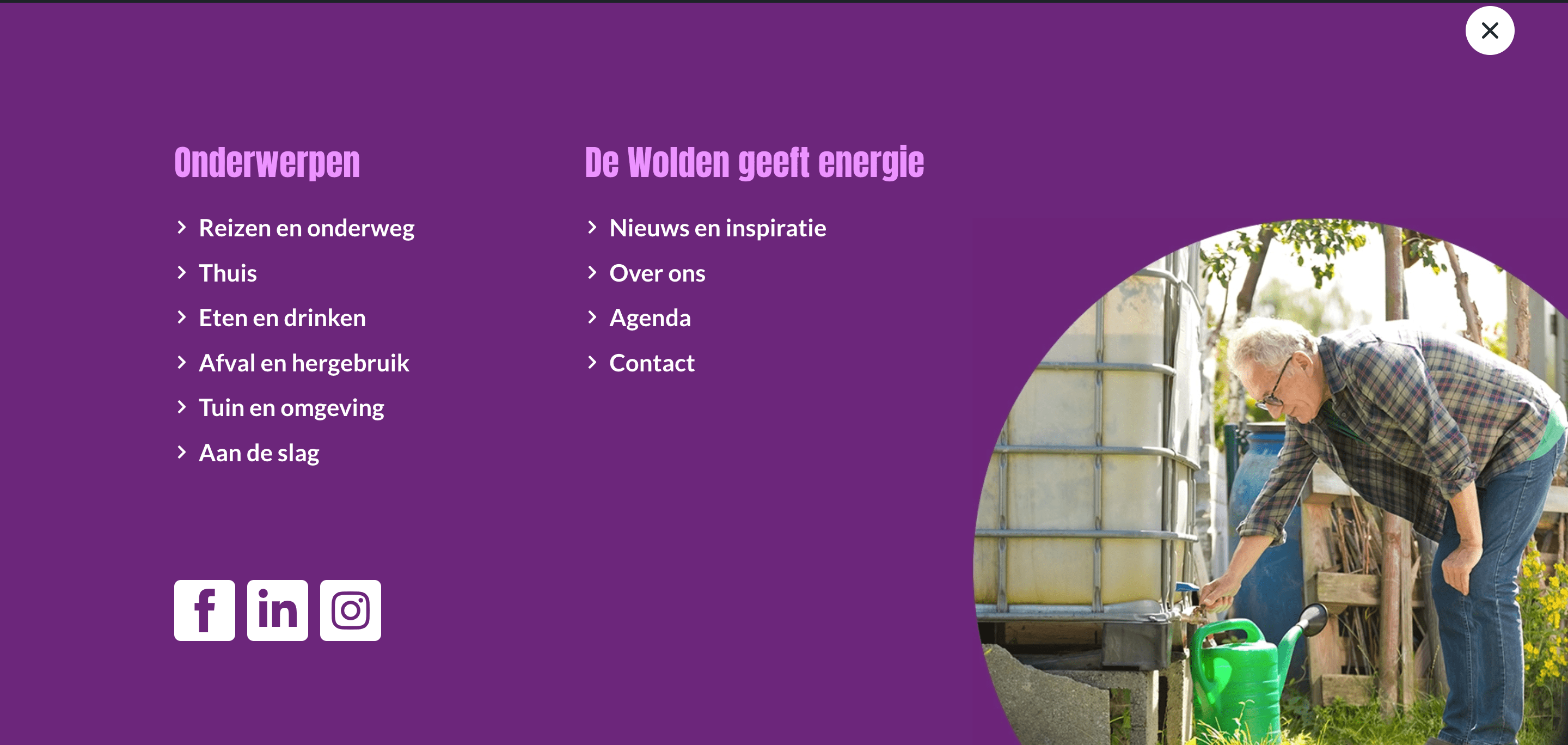 De Wolden Geeft Energie is een platform van de gemeente voor de inwoners van De Wolden. Op de website vind je inspiratie voor een duurzamer leven. Van groen in de tuin tot het repareren van kleding. Door ons gedrag iets aan te passen kunnen we samen in de gemeente al veel betekenen. Wat je precies aanpast, bepaal je zelf. De website is er om je te inspireren en je eigen invulling aan duurzaamheid te geven.